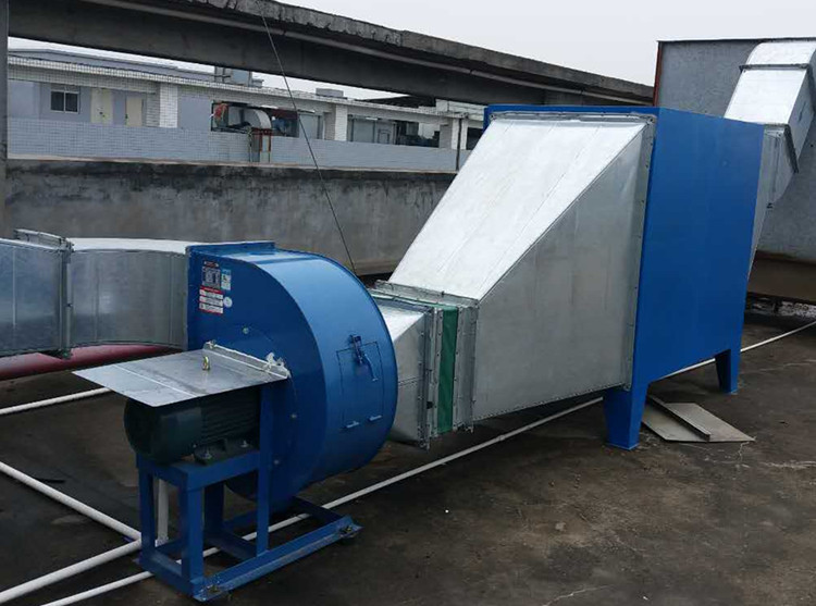 含塵氣體由風(fēng)機(jī)提供動(dòng)力,正壓或負(fù)壓進(jìn)入塔體,由于活性炭固體表面上存在著未平衡和未飽和的分子引力或化學(xué)健力,因此當(dāng)此固體表面與氣體接觸時(shí),就能吸引氣體分子,使其濃聚并保持在固體表面,污染物質(zhì)從而被吸附,廢氣經(jīng)過(guò)濾器后,進(jìn)入設(shè)備排塵系統(tǒng),凈化氣體高空達(dá)標(biāo)排放。