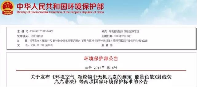 今年5月份,國家環(huán)境保護(hù)部批準(zhǔn)了《環(huán)境空氣 顆粒物中無機(jī)元素的測定 能量色散X射線熒光光譜法》(HJ 829-2017)和《環(huán)境空氣 顆粒物中無機(jī)元素的測定 波長色散X射線熒光光譜法》(HJ830-2017)兩項(xiàng)標(biāo)準(zhǔn)為國家環(huán)境保護(hù)標(biāo)準(zhǔn),予以發(fā)布。